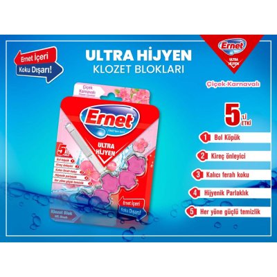 129.60 TL108.00 TL ERNET Ultra Hijyen Klozet Blok Çiçek Karnavalı 50 Gr